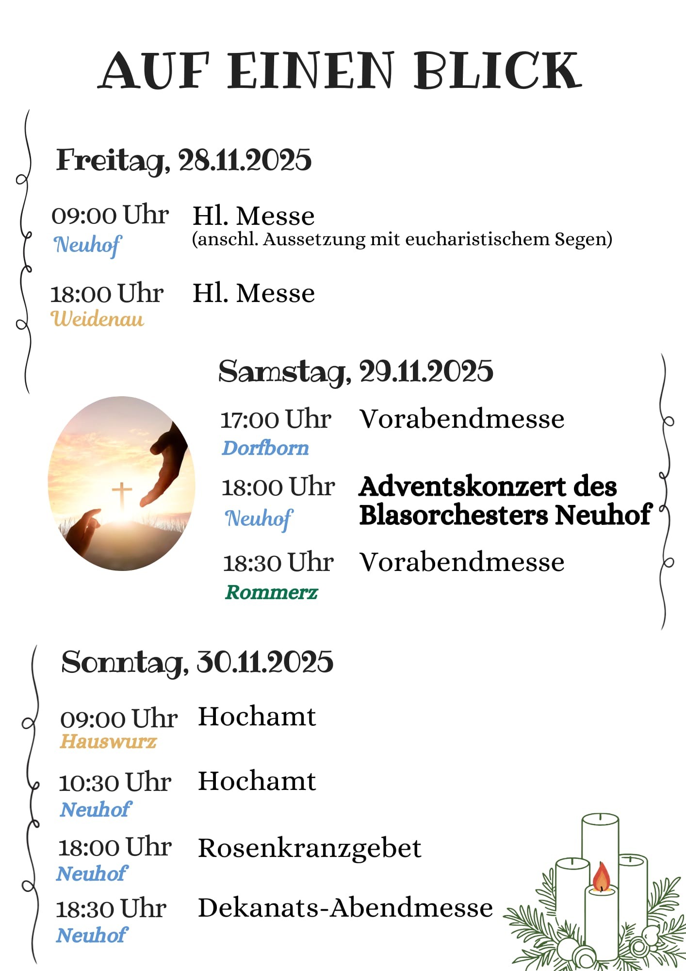 Wir freuen uns, dass Sie den Weg auf die Internetseiten der Pfarrgemeinden St. Michael Neuhof, Mariä Himmelfahrt Rommerz und St. Bartholomäus Hauswurz gefunden haben. Haben Sie viel Spaß beim Umschauen und Entdecken.